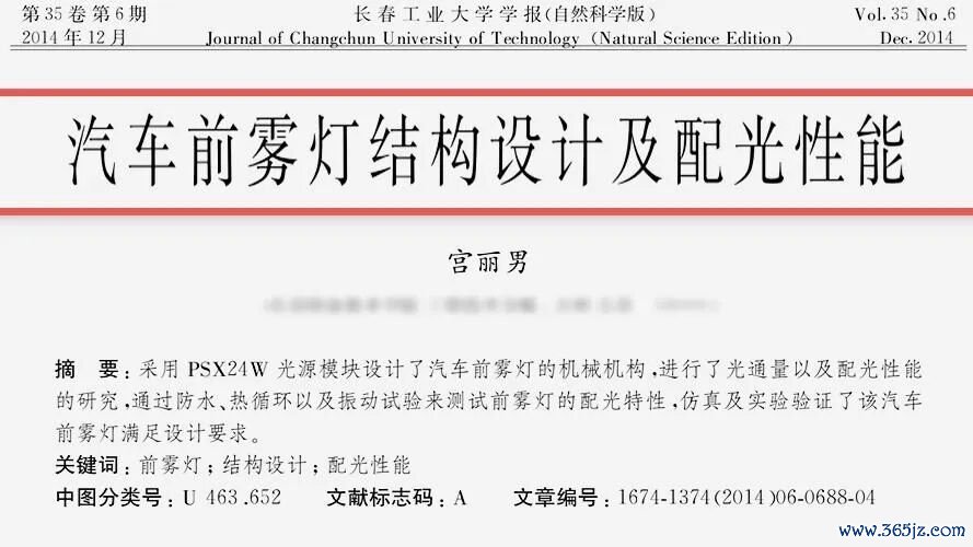 宫丽男.汽车前雾灯结构设计及配光性能[J].长春工业大学学报(自然科学版),2014.